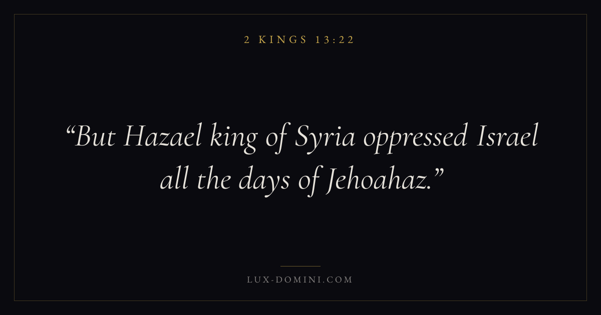 But Hazael king of Syria oppressed Israel all the days of Jehoahaz.