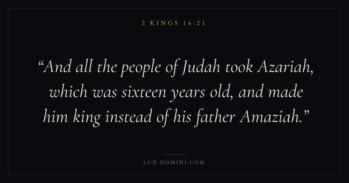 And all the people of Judah took Azariah, which was sixteen years old, and made him king instead of his father Amaziah.