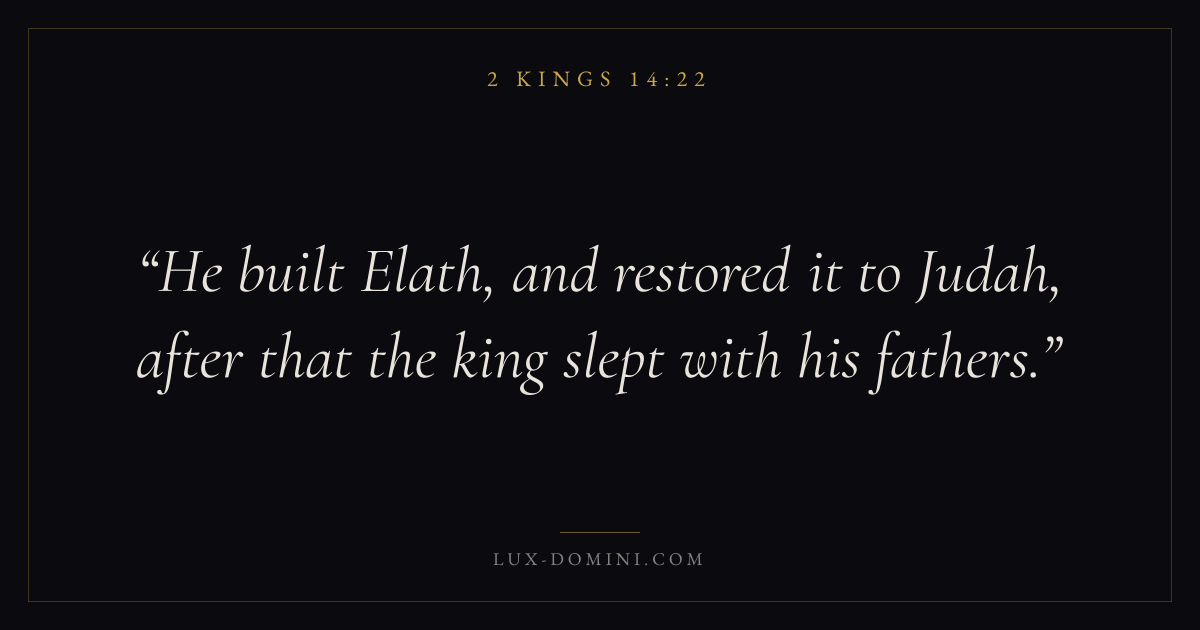 He built Elath, and restored it to Judah, after that the king slept with his fathers.