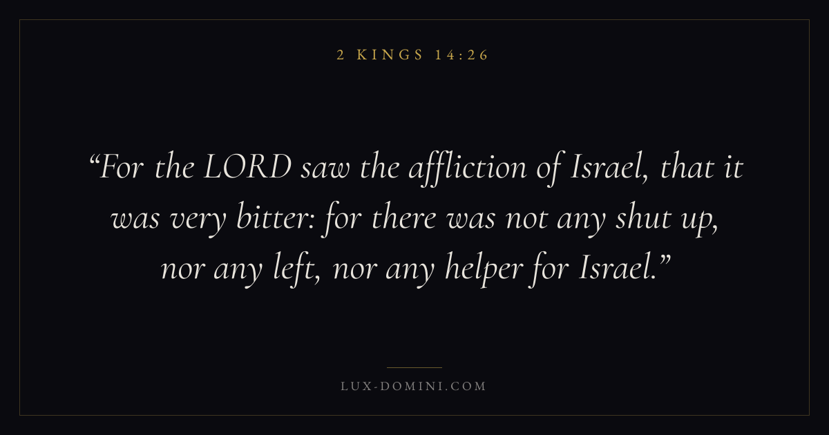For the LORD saw the affliction of Israel, that it was very bitter: for there was not any shut up, nor any left, nor any helper for Israel.