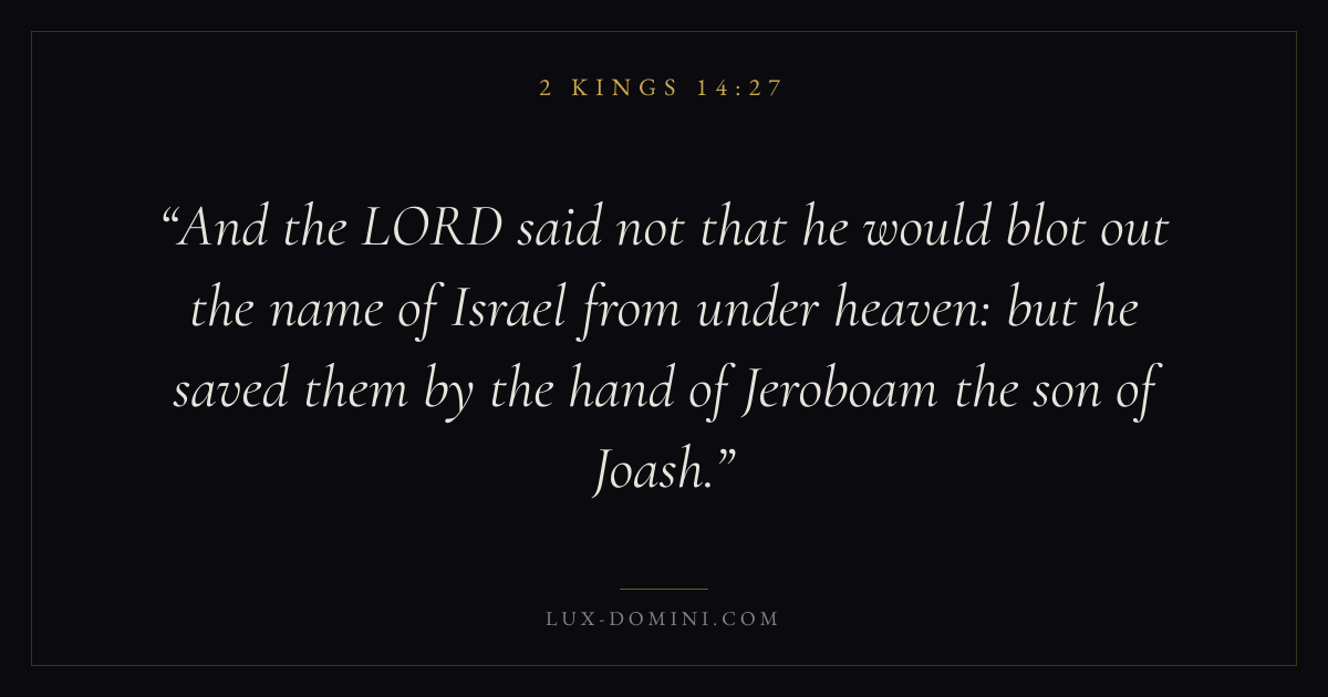 And the LORD said not that he would blot out the name of Israel from under heaven: but he saved them by the hand of Jeroboam the son of Joash.