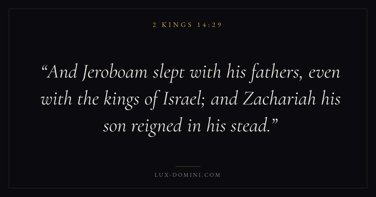 And Jeroboam slept with his fathers, even with the kings of Israel; and Zachariah his son reigned in his stead.