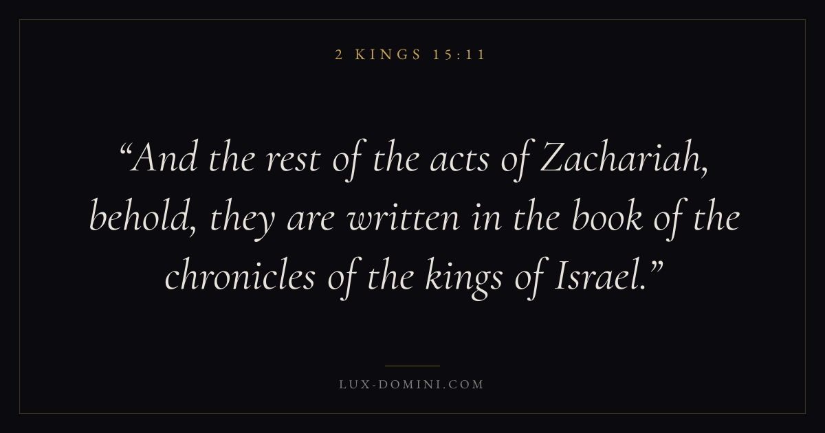And the rest of the acts of Zachariah, behold, they are written in the book of the chronicles of the kings of Israel.