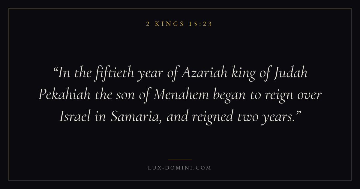In the fiftieth year of Azariah king of Judah Pekahiah the son of Menahem began to reign over Israel in Samaria, and reigned two years.