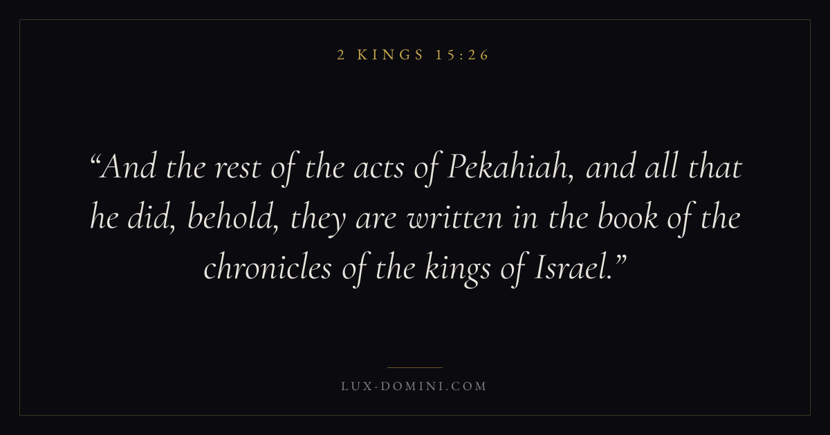 And the rest of the acts of Pekahiah, and all that he did, behold, they are written in the book of the chronicles of the kings of Israel.