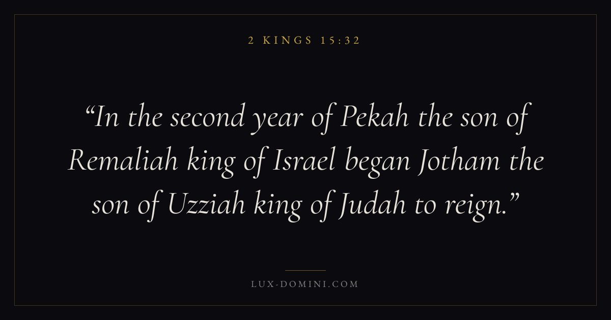 In the second year of Pekah the son of Remaliah king of Israel began Jotham the son of Uzziah king of Judah to reign.