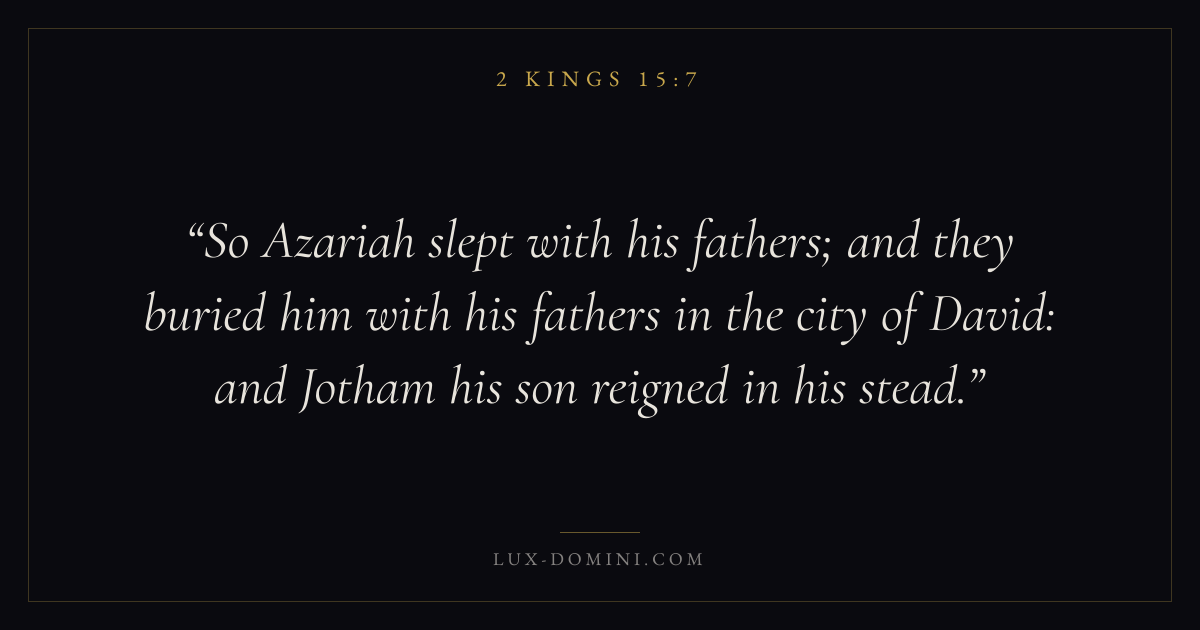 So Azariah slept with his fathers; and they buried him with his fathers in the city of David: and Jotham his son reigned in his stead.