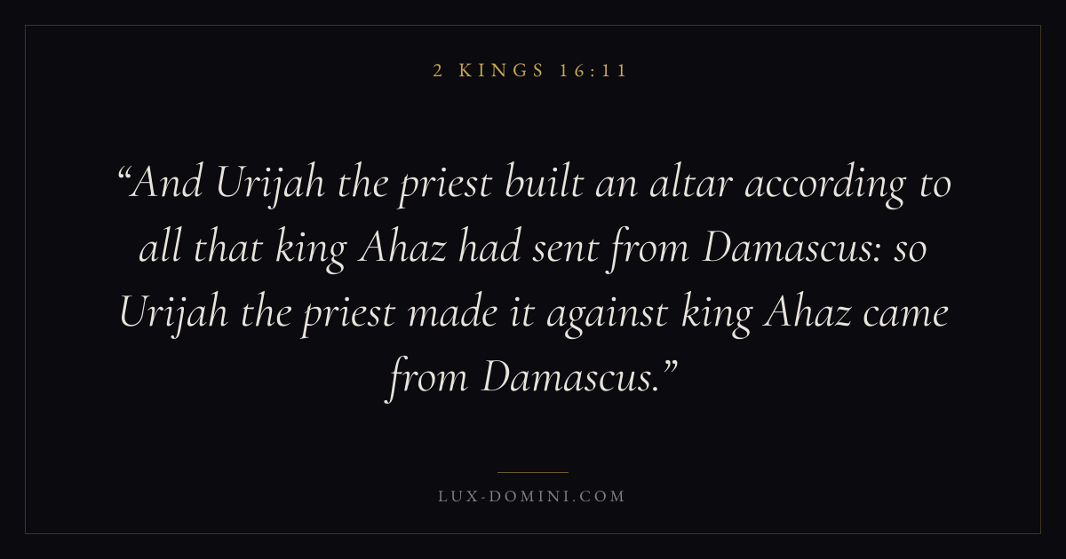 And Urijah the priest built an altar according to all that king Ahaz had sent from Damascus: so Urijah the priest made it against king Ahaz came from Damascus.