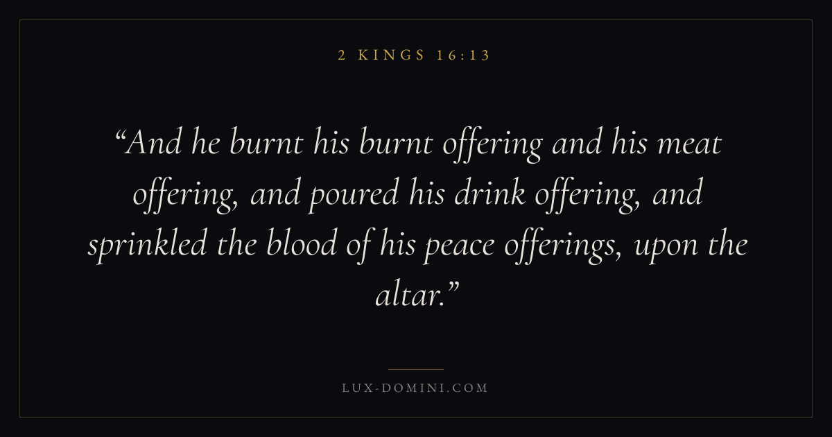 And he burnt his burnt offering and his meat offering, and poured his drink offering, and sprinkled the blood of his peace offerings, upon the altar.