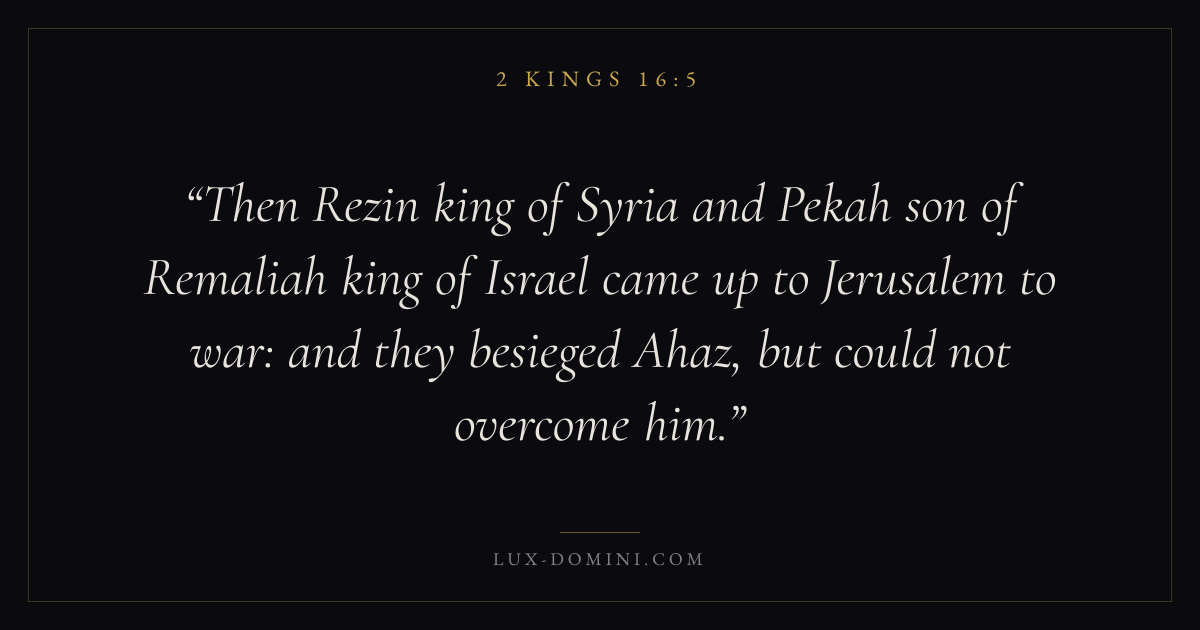 Then Rezin king of Syria and Pekah son of Remaliah king of Israel came up to Jerusalem to war: and they besieged Ahaz, but could not overcome him.