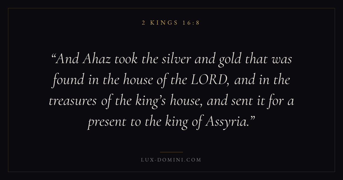And Ahaz took the silver and gold that was found in the house of the LORD, and in the treasures of the king’s house, and sent it for a present to the king of Assyria.
