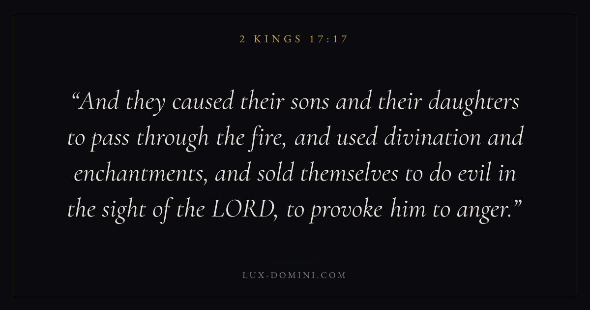 And they caused their sons and their daughters to pass through the fire, and used divination and enchantments, and sold themselves to do evil in the sight of the LORD, to provoke him to anger.