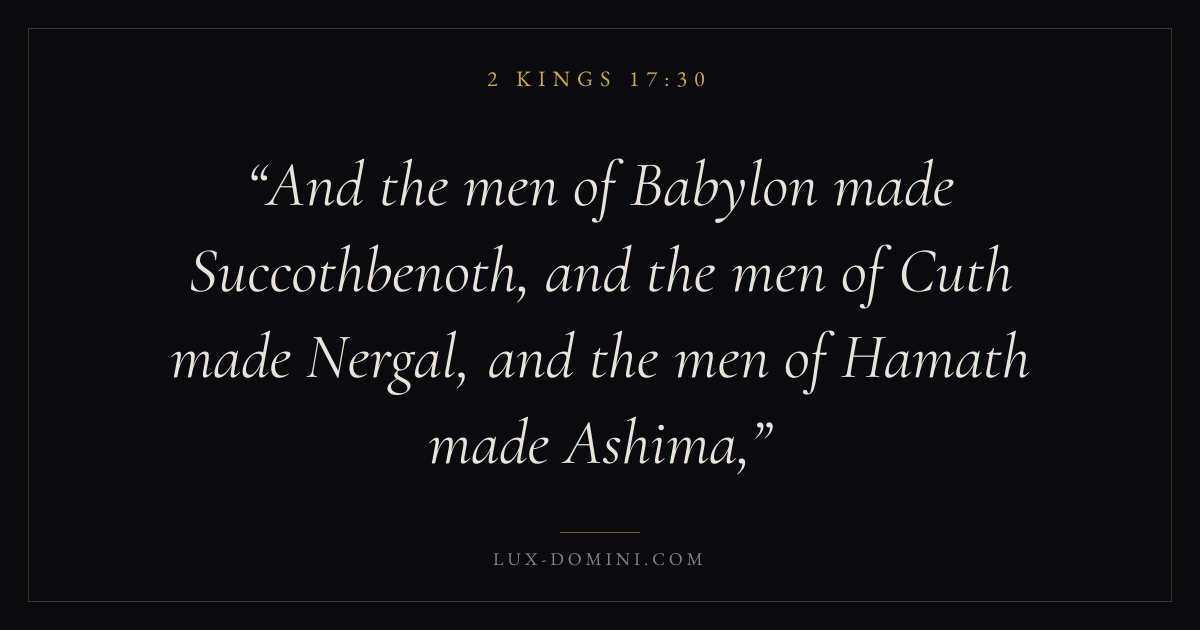 And the men of Babylon made Succothbenoth, and the men of Cuth made Nergal, and the men of Hamath made Ashima,