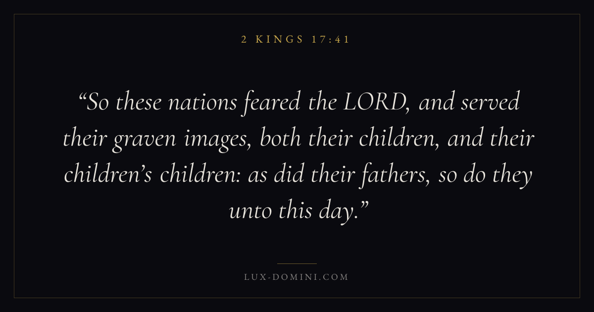 So these nations feared the LORD, and served their graven images, both their children, and their children’s children: as did their fathers, so do they unto this day.