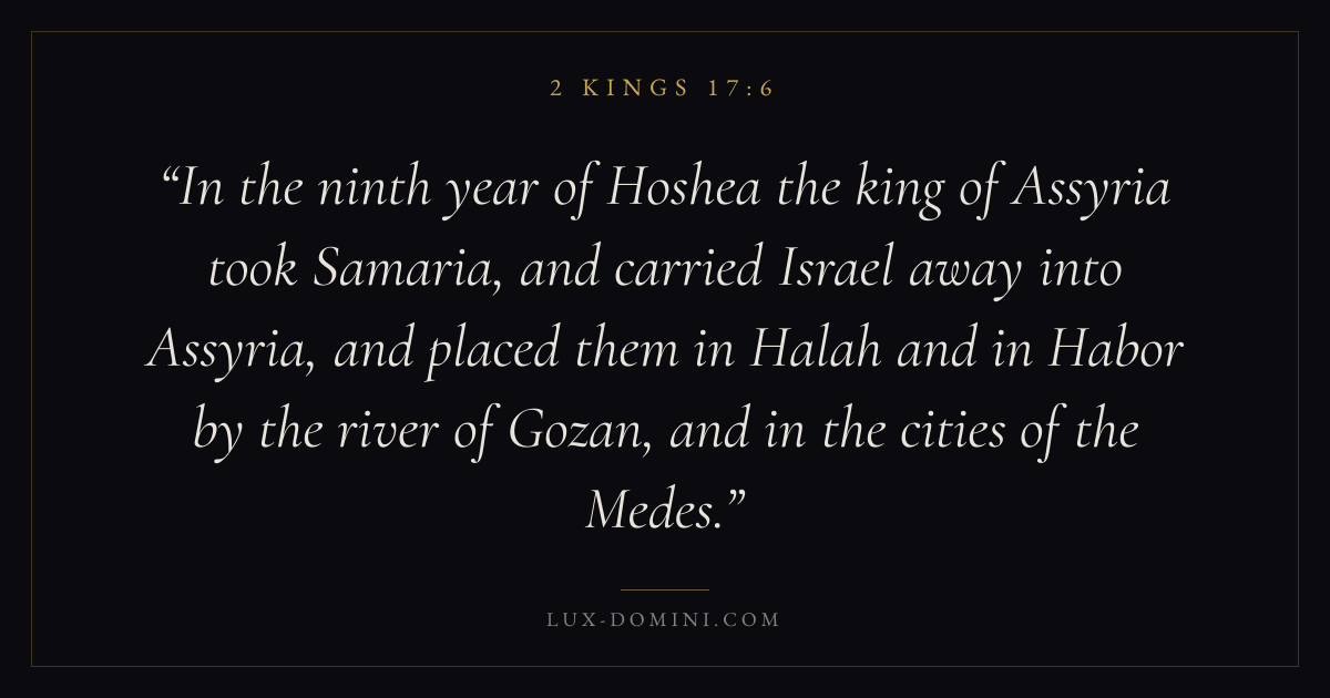 In the ninth year of Hoshea the king of Assyria took Samaria, and carried Israel away into Assyria, and placed them in Halah and in Habor by the river of Gozan, and in the cities of the Medes.