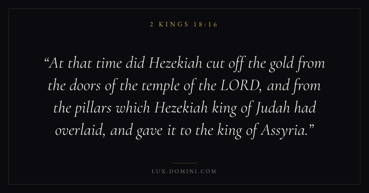 At that time did Hezekiah cut off the gold from the doors of the temple of the LORD, and from the pillars which Hezekiah king of Judah had overlaid, and gave it to the king of Assyria.
