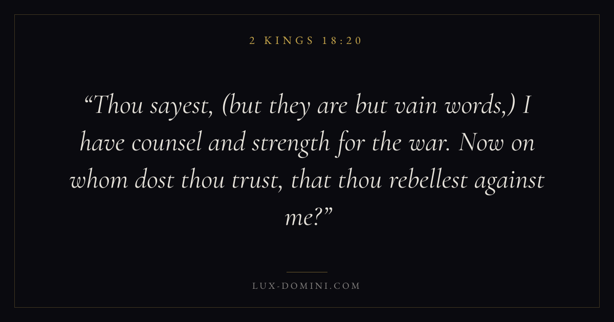 Thou sayest, (but they are but vain words,) I have counsel and strength for the war. Now on whom dost thou trust, that thou rebellest against me?
