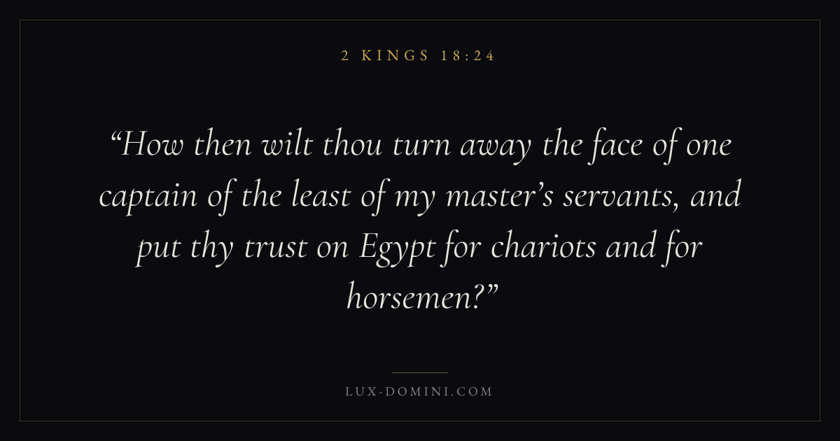 How then wilt thou turn away the face of one captain of the least of my master’s servants, and put thy trust on Egypt for chariots and for horsemen?