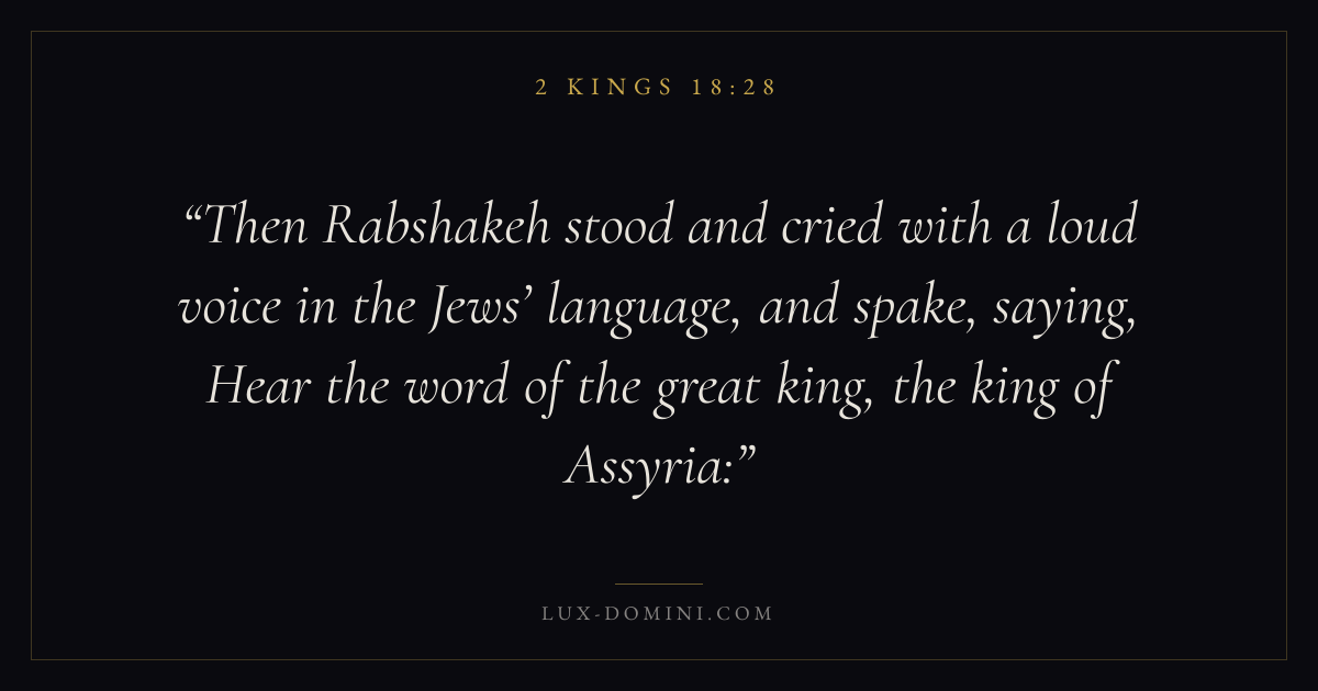 Then Rabshakeh stood and cried with a loud voice in the Jews’ language, and spake, saying, Hear the word of the great king, the king of Assyria: