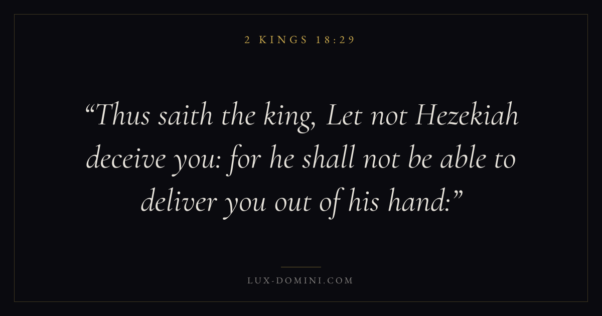 Thus saith the king, Let not Hezekiah deceive you: for he shall not be able to deliver you out of his hand: