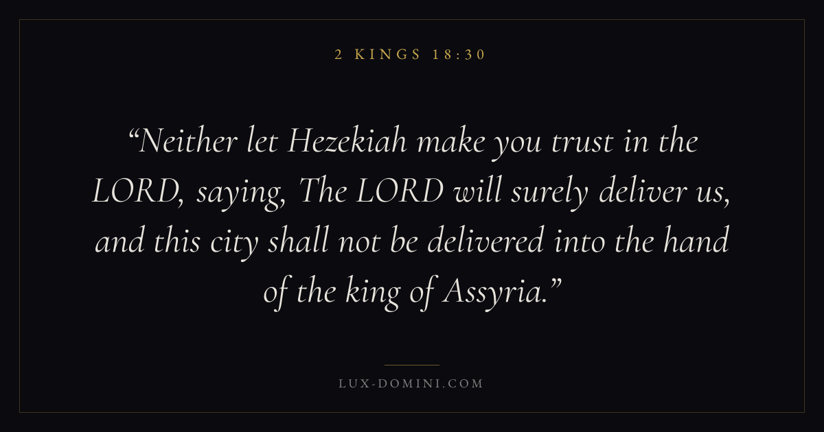 Neither let Hezekiah make you trust in the LORD, saying, The LORD will surely deliver us, and this city shall not be delivered into the hand of the king of Assyria.