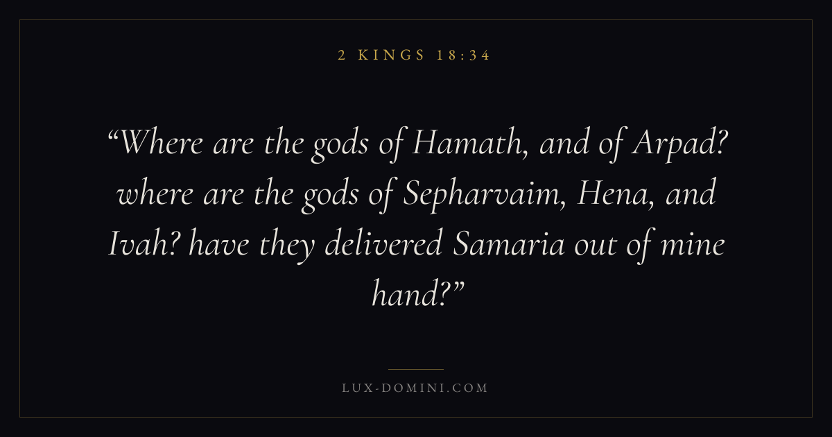 Where are the gods of Hamath, and of Arpad? where are the gods of Sepharvaim, Hena, and Ivah? have they delivered Samaria out of mine hand?