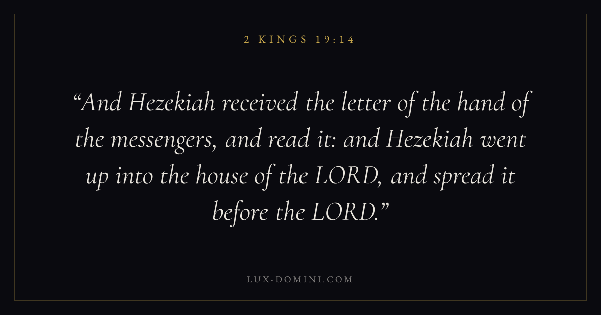 And Hezekiah received the letter of the hand of the messengers, and read it: and Hezekiah went up into the house of the LORD, and spread it before the LORD.