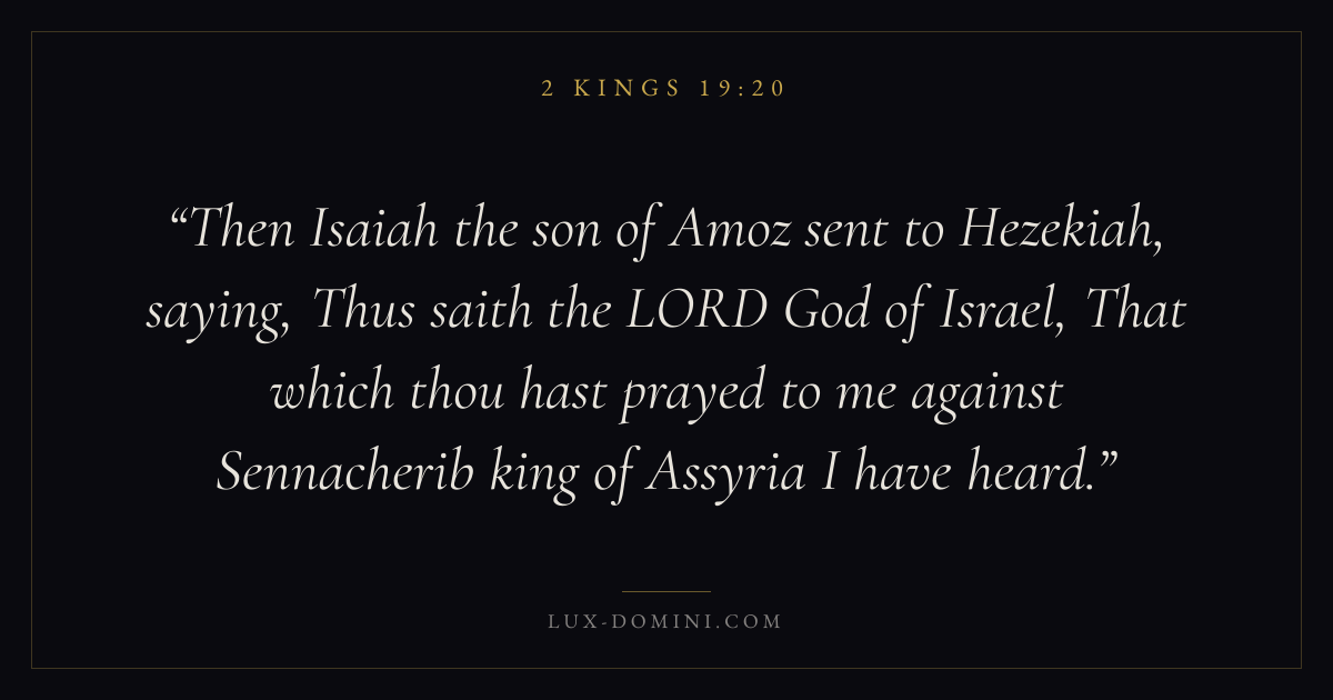 Then Isaiah the son of Amoz sent to Hezekiah, saying, Thus saith the LORD God of Israel, That which thou hast prayed to me against Sennacherib king of Assyria I have heard.