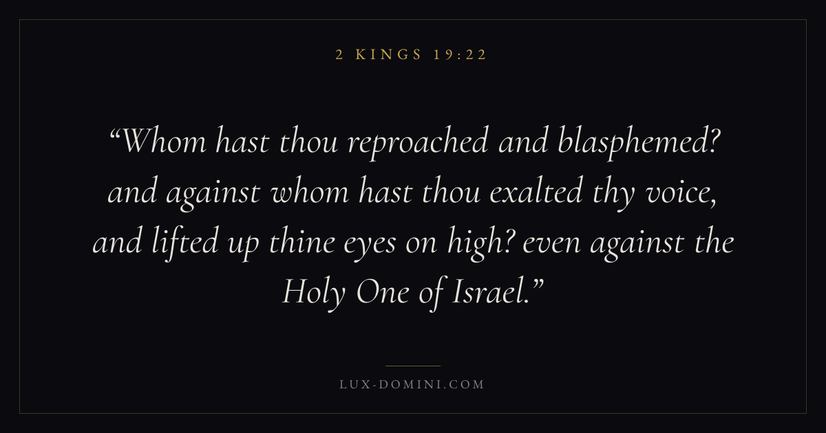 Whom hast thou reproached and blasphemed? and against whom hast thou exalted thy voice, and lifted up thine eyes on high? even against the Holy One of Israel.