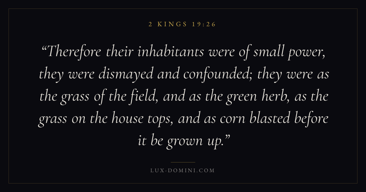Therefore their inhabitants were of small power, they were dismayed and confounded; they were as the grass of the field, and as the green herb, as the grass on the house tops, and as corn blasted before it be grown up.