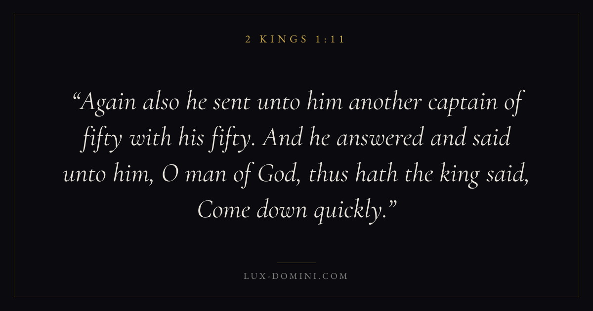 Again also he sent unto him another captain of fifty with his fifty. And he answered and said unto him, O man of God, thus hath the king said, Come down quickly.
