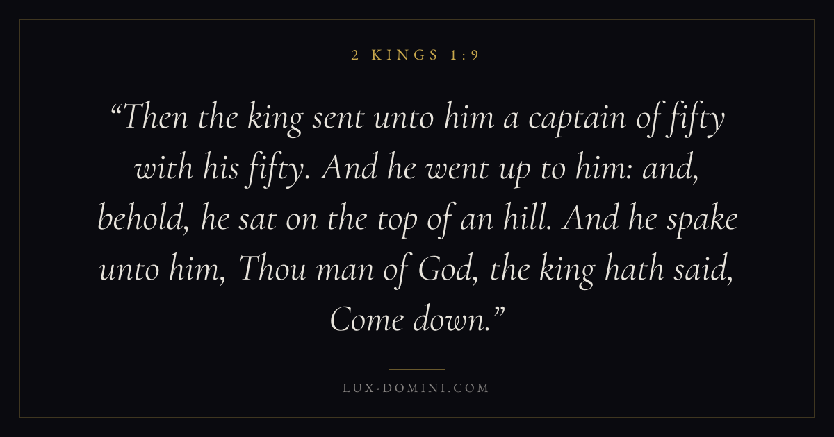 Then the king sent unto him a captain of fifty with his fifty. And he went up to him: and, behold, he sat on the top of an hill. And he spake unto him, Thou man of God, the king hath said, Come down.
