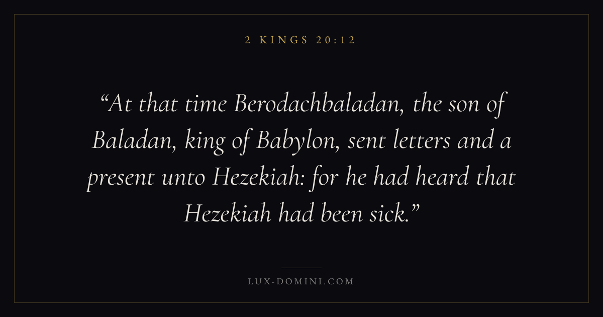 At that time Berodachbaladan, the son of Baladan, king of Babylon, sent letters and a present unto Hezekiah: for he had heard that Hezekiah had been sick.