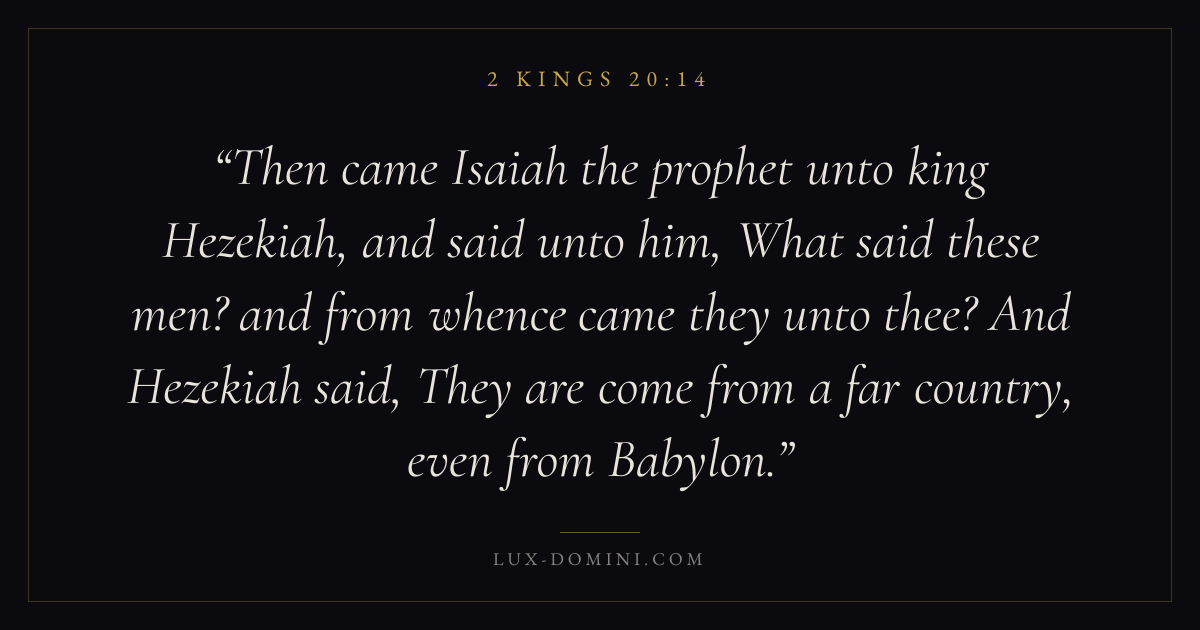 Then came Isaiah the prophet unto king Hezekiah, and said unto him, What said these men? and from whence came they unto thee? And Hezekiah said, They are come from a far country, even from Babylon.