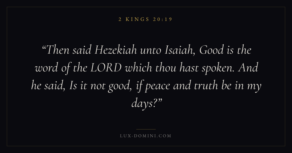Then said Hezekiah unto Isaiah, Good is the word of the LORD which thou hast spoken. And he said, Is it not good, if peace and truth be in my days?