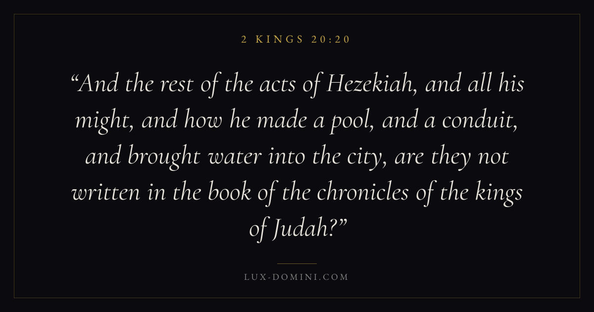 And the rest of the acts of Hezekiah, and all his might, and how he made a pool, and a conduit, and brought water into the city, are they not written in the book of the chronicles of the kings of Judah?