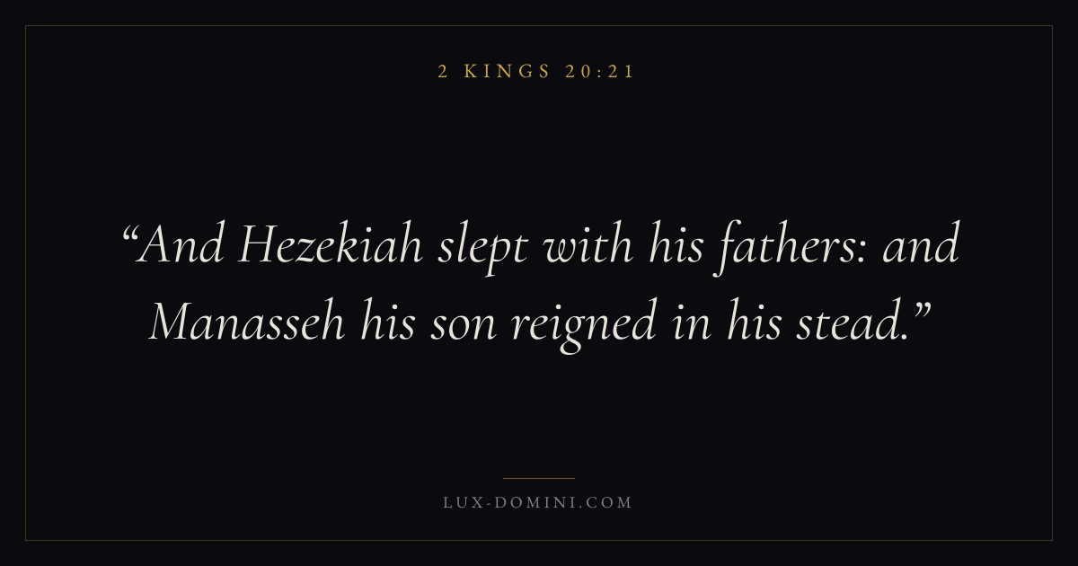 And Hezekiah slept with his fathers: and Manasseh his son reigned in his stead.