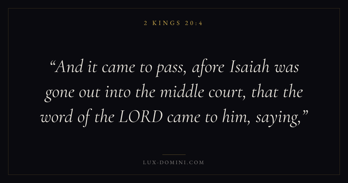 And it came to pass, afore Isaiah was gone out into the middle court, that the word of the LORD came to him, saying,