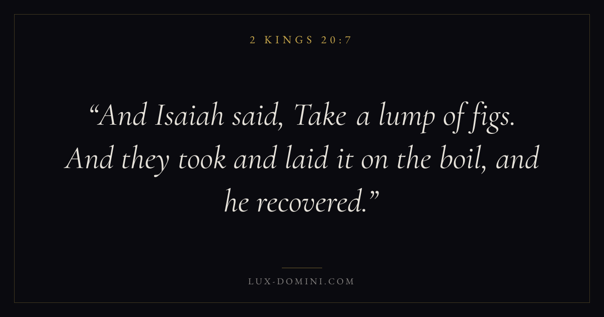 And Isaiah said, Take a lump of figs. And they took and laid it on the boil, and he recovered.