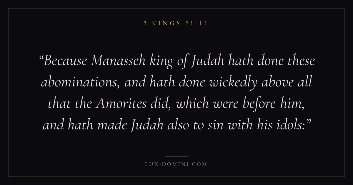 Because Manasseh king of Judah hath done these abominations, and hath done wickedly above all that the Amorites did, which were before him, and hath made Judah also to sin with his idols: