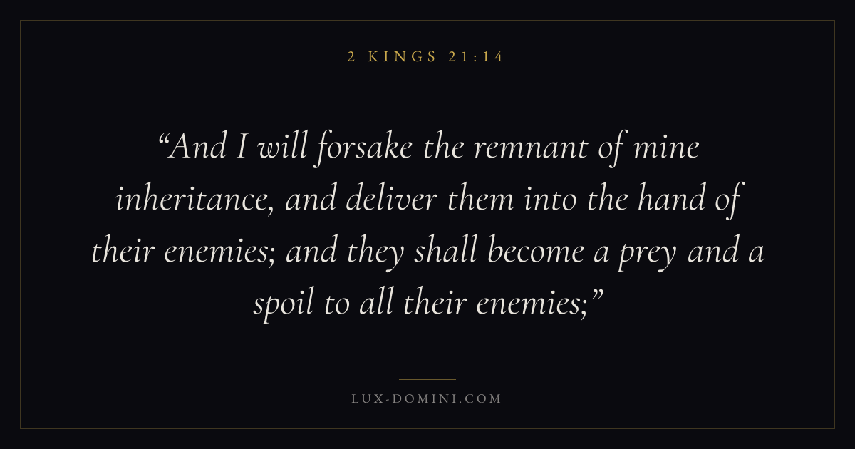 And I will forsake the remnant of mine inheritance, and deliver them into the hand of their enemies; and they shall become a prey and a spoil to all their enemies;