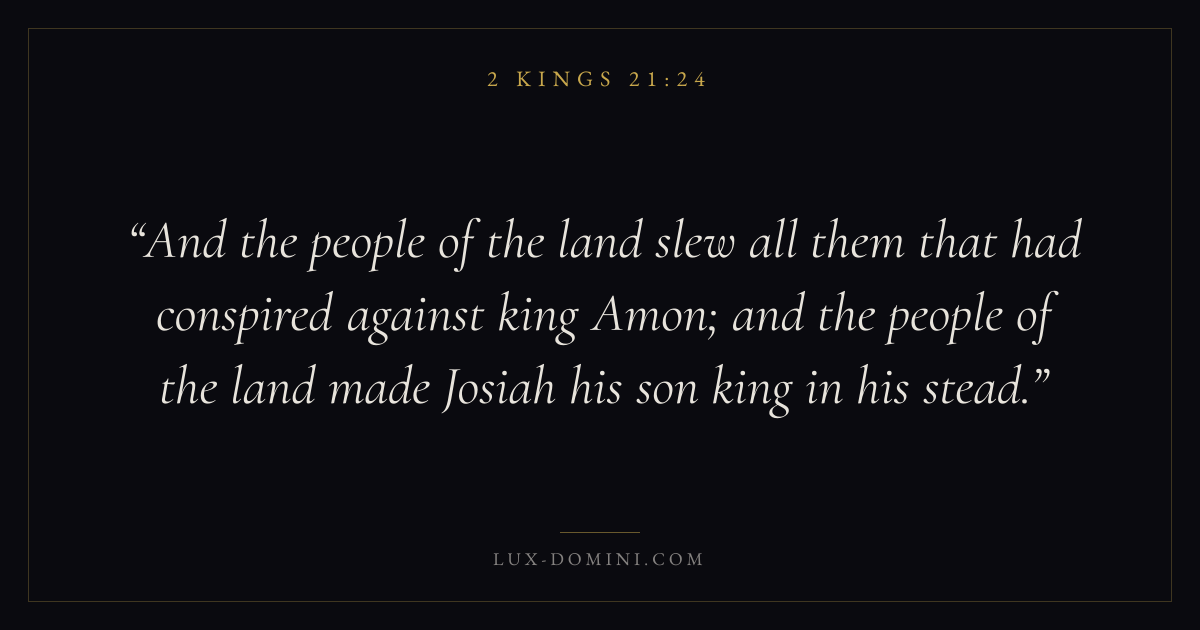 And the people of the land slew all them that had conspired against king Amon; and the people of the land made Josiah his son king in his stead.