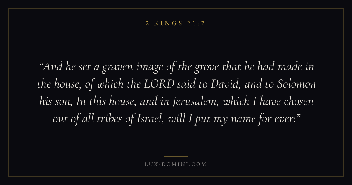 And he set a graven image of the grove that he had made in the house, of which the LORD said to David, and to Solomon his son, In this house, and in Jerusalem, which I have chosen out of all tribes of Israel, will I put my name for ever: