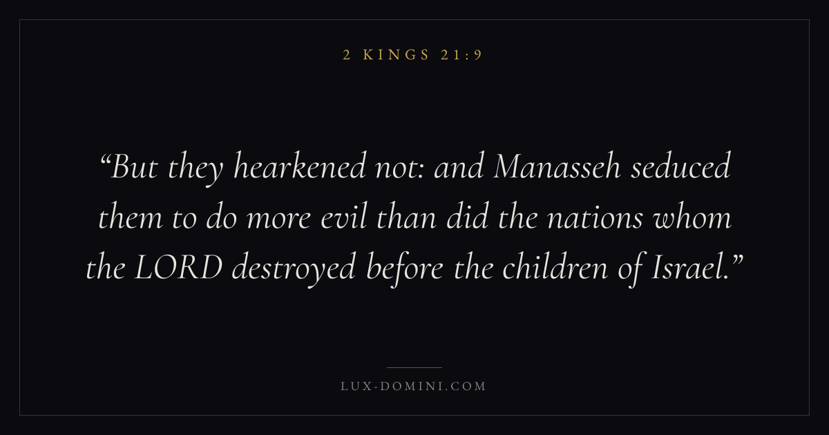 But they hearkened not: and Manasseh seduced them to do more evil than did the nations whom the LORD destroyed before the children of Israel.