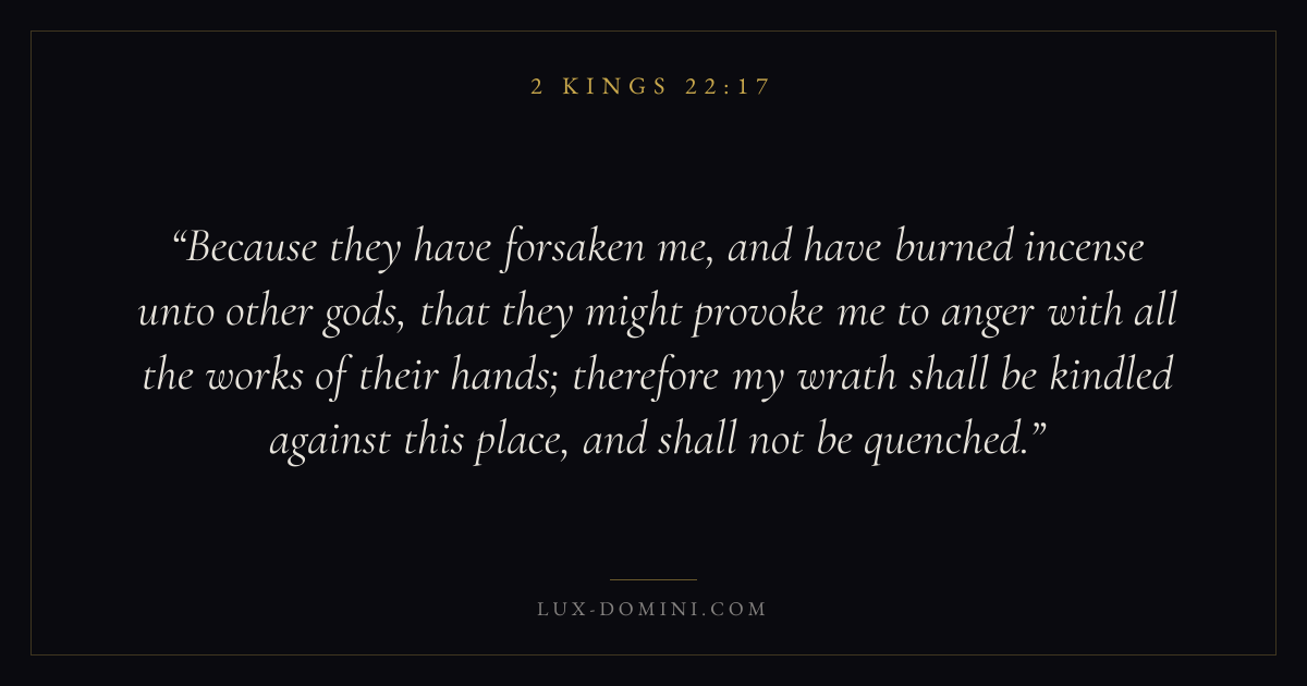 Because they have forsaken me, and have burned incense unto other gods, that they might provoke me to anger with all the works of their hands; therefore my wrath shall be kindled against this place, and shall not be quenched.