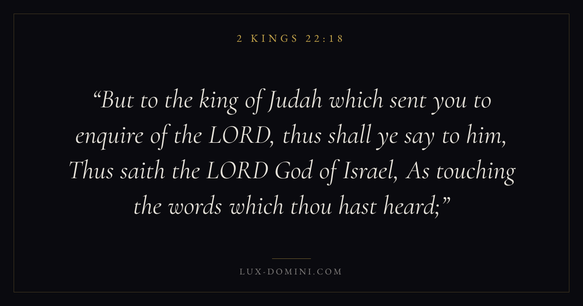 But to the king of Judah which sent you to enquire of the LORD, thus shall ye say to him, Thus saith the LORD God of Israel, As touching the words which thou hast heard;