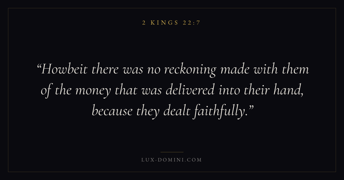 Howbeit there was no reckoning made with them of the money that was delivered into their hand, because they dealt faithfully.