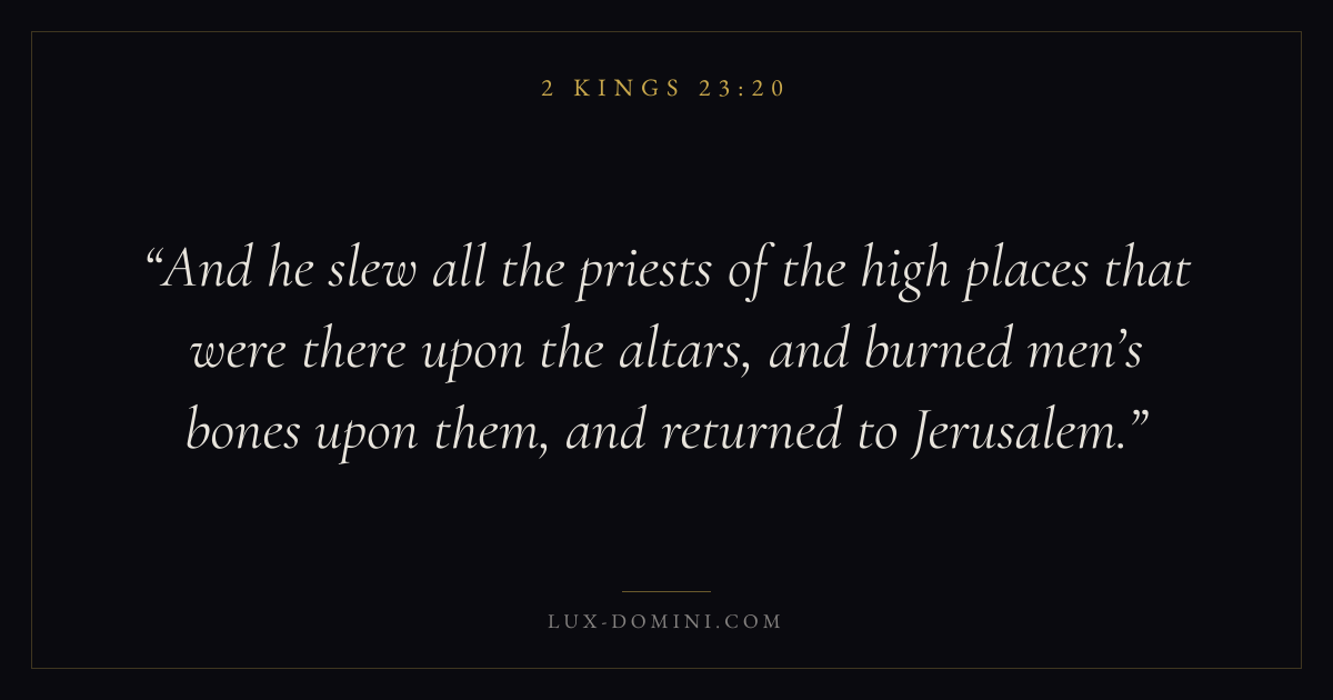 And he slew all the priests of the high places that were there upon the altars, and burned men’s bones upon them, and returned to Jerusalem.