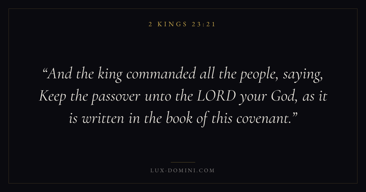 And the king commanded all the people, saying, Keep the passover unto the LORD your God, as it is written in the book of this covenant.
