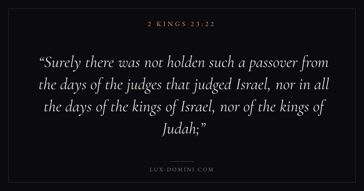 Surely there was not holden such a passover from the days of the judges that judged Israel, nor in all the days of the kings of Israel, nor of the kings of Judah;